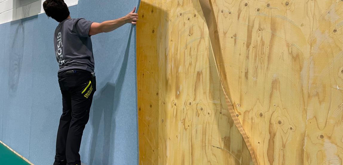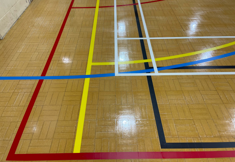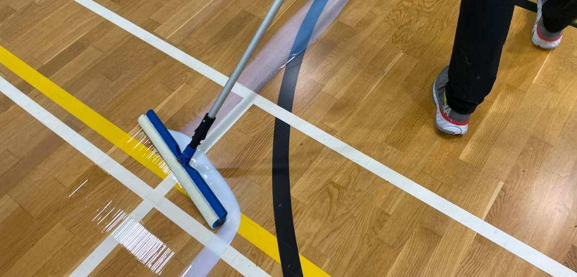 Typically found in Gymnasiums and some sports halls. Pre-finished board or strip.